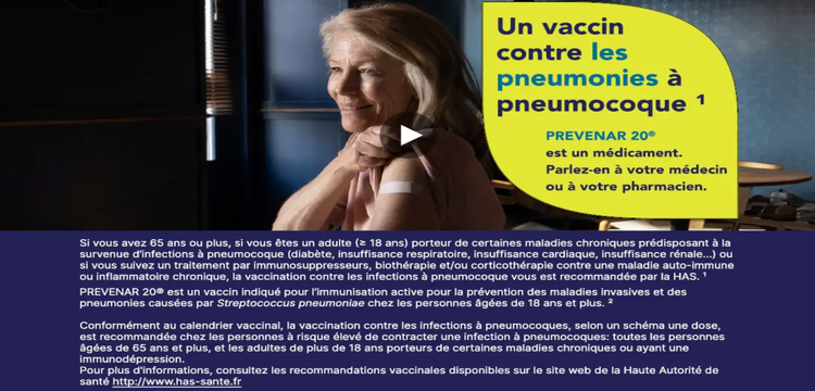 - Haute Autorité de Santé. Recommandation. Élargissement des critères d’éligibilité à la vaccination antipneumococcique chez les adultes. Place du vaccin PREVENAR 20® chez les adultes séniors, tous niveaux de risque inclus. Validé par le Collège le 19 décembre 2024.